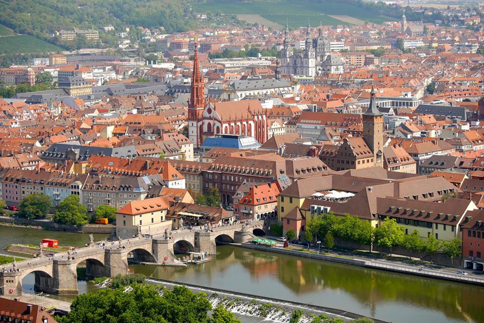 Ngày hôm sau chúng tôi bắt đầu chuyến khám phá “Romantic Road” bằng việc tham quan thành phố Würzburg. Người ta nói, Wurzburg là viên ngọc trên sông Main và thành phố là sự tổng hòa giữa lịch sử, văn hoá và rượu vang. Pháo đài Festung Marienberg, một trong những địa điểm “phải đến” ở Würzburg, nằm trên ngọn đồi đối diện thành phố cổ. Công trình kiến trúc có tuổi đời hơn năm thế kỷ này là niềm kiêu hãnh lớn của Würzburg.