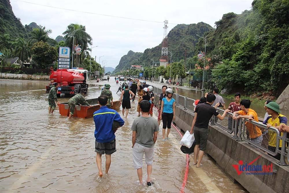 Tuy vậy, từ sáng đến trưa mực nước mới giảm 30cm, mọi phương tiện đều phải đi đường tránh tuyến Hoành Bồ nếu muốn từ TP Hạ Long qua TP Cẩm Phả và ngược lại.