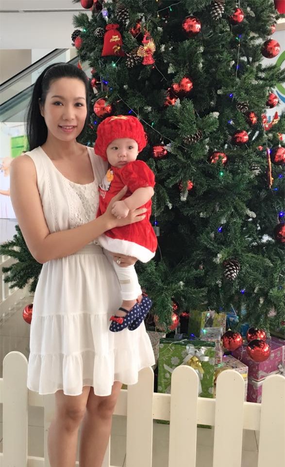 Á hậu Trịnh Kim Chi và con mới sinh đón Noel đầu tiên