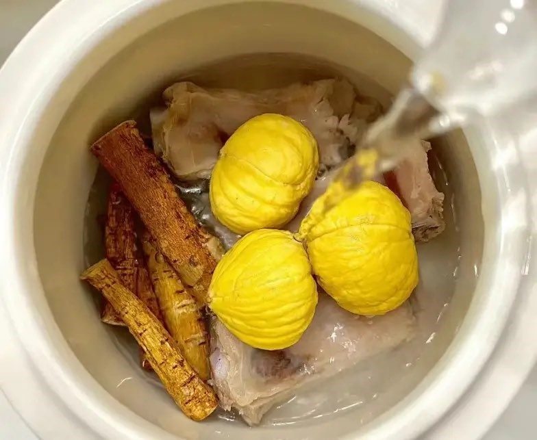 Cách nấu món canh sườn rễ đào năm ngón và hạt dẻ