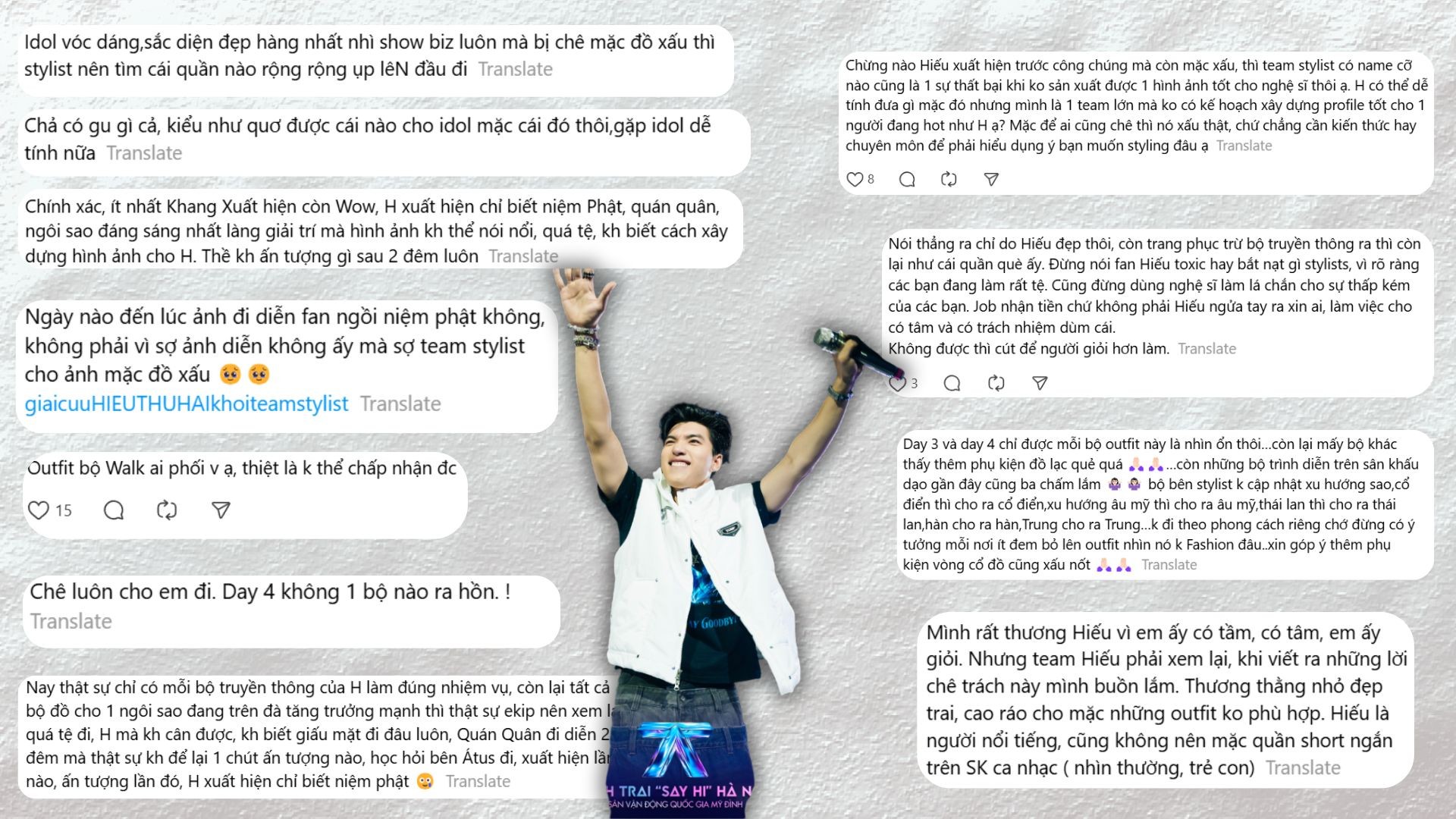 Netizen so sánh thời trang trình diễn của HIEUTHUHAI ở các giai đoạn: "Hiếu chưa bao giờ mặc xấu, cụ thể là trước Anh Trai Say Hi". Bài đăng chỉ trích về thái độ làm việc của đội ngũ sản xuất hình ảnh mới của HIEUTHUHAI hút hơn 64 nghìn lượt truy cập.