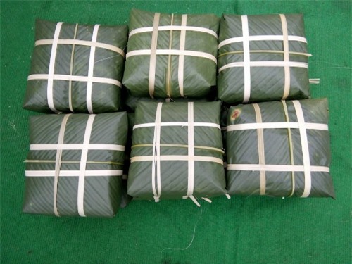 Những chiếc bánh chưng nhân mật vuông vắn chuẩn bị được đưa vào nồi