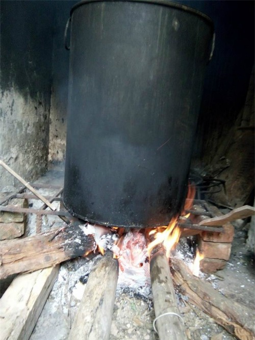 Gói xong bánh chưng, các thanh niên trong gia đình xếp bánh vào một chiếc nồi dài, đặt lên bếp tro và nhóm lửa. Bánh được ninh suốt 12 tiếng bằng những thanh củi to. Ông Liễu cho biết, nấu bánh chưng phải bằng củi to mới đượm lửa, hạt gạo nếp cái hoa vàng nở đều và đạt độ “rền”. Đặc biệt, vỏ bánh sẽ mềm, đường hoa mai tan chảy ngấm dần vào lớp nhân thịt và đỗ. Bánh chín, ông Liễu tự tay vớt ra và bắt đầu quá trình ép nước.