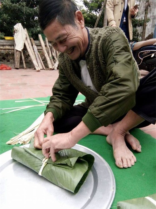 Trước khi gói bánh, ông Liễu chọn không gian sân trước nhà thờ trải chiếu ngồi. Ông bảo, mọi người quây quần gói bánh bên sân khiến tình cảm anh em thêm thắt chặt, con cháu nhớ về cội nguồn. Đặc biệt, khung cảnh đó giống nét hoài niệm xưa về một gia đình truyền thống nơi làng quê thanh bình.