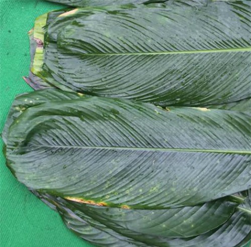 Lá dong được rửa sạch, tước cuống và để ráo nước trước khi gói