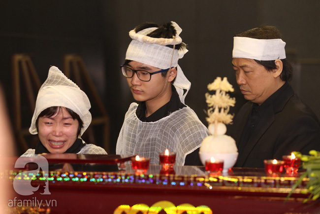 Ngay khi bước vào phòng tang để mặc áo xô thực hiện nghi lễ, vợ NSND Anh Tú đã đầm đìa nước mắt.