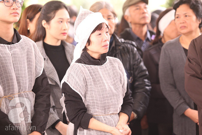 Trong suốt buổi lễ, vợ NSND Anh Tú không lúc nào thôi khóc. Dáng vẻ tiều tụy của chị khiến nhiều người đau lòng.