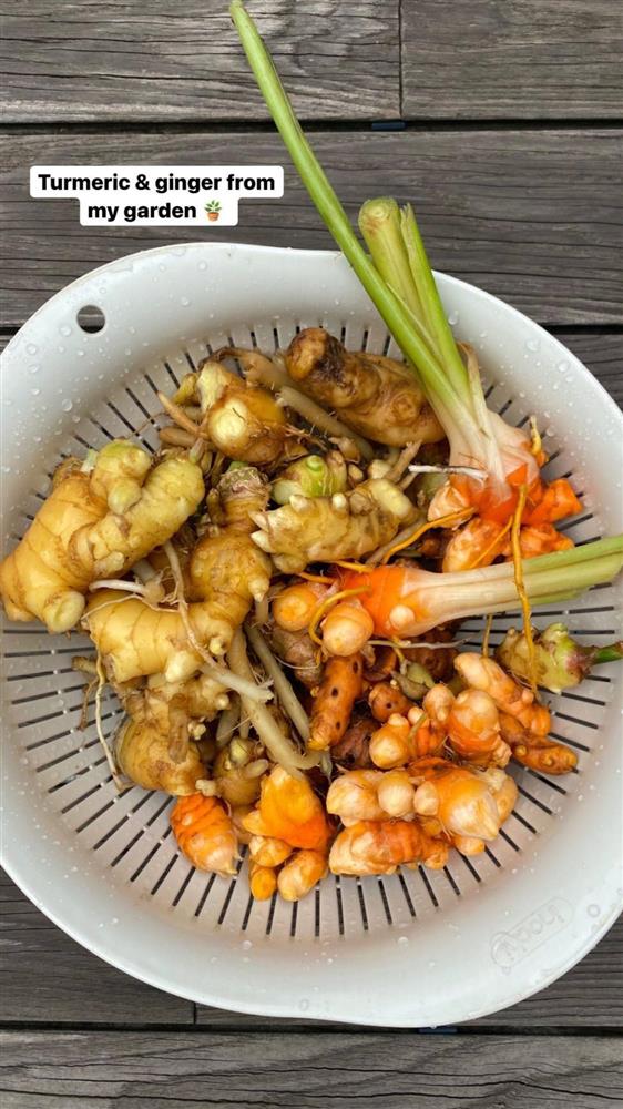 Không chỉ có rau xanh, Tăng Thanh Hà còn trồng được cả nghệ, gừng, sả.
