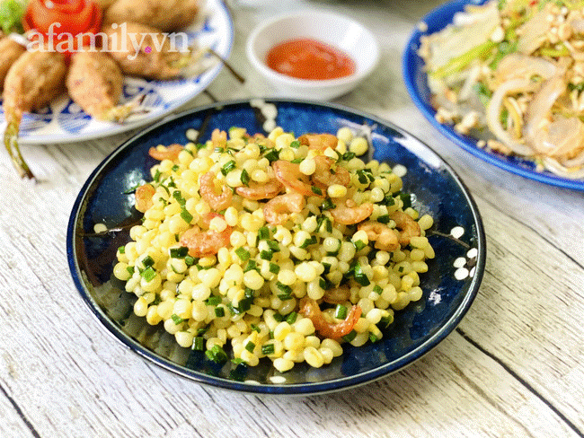 Nguyên liệu: 400g hạt bắp nếp, 50g tôm khô, 100g hành lá, 2 muỗng bơ, 2 tép tỏi, muối, bột ngọt (tùy thích)