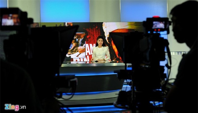 Ngọc Trinh thay đồ và trang điểm. Hôm nay, cô sẽ dẫn bản tin Chuyển động 24h lúc 11h30. Người đẹp từng chia sẻ, đối với công việc đang làm, dấu ấn về mặt hình thức là đầu tiên và rất quan trọng. Vì thế, cô không bỏ qua cơ hội để có thể tạo được ấn tượng tốt ban đầu.