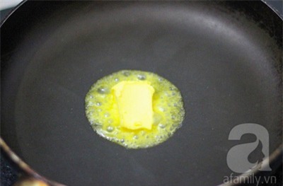 ![]() | ![]() Làm nóng chảo, cho bơ vào chảo cho bơ tan chảy. |