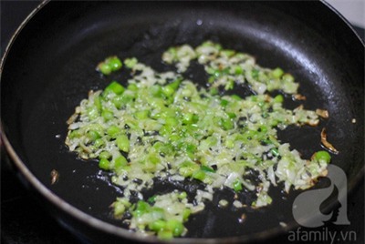 ![]() | ![]() Đổ hành củ thái nhỏ vào phi thơm. |