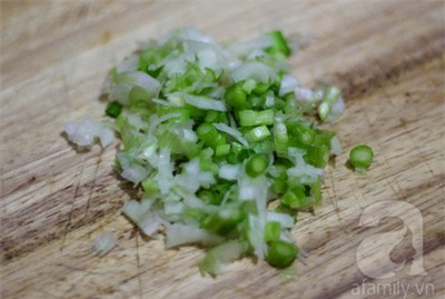 ![]() | ![]() Cuối cùng, bạn cho hành lá cắt nhỏ vào đảo đều rồi tắt bếp nhé! |