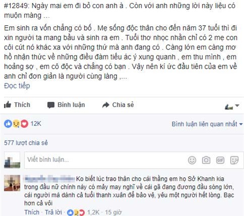 Ngay khi được đăng tải, confessions đã nhận được hơn 12 nghìn like, cùng với đó là gần 600 lượt chia sẻ. Hàng nghìn bình luận bày tỏ sự thương xót, phẫn nộ, trách móc cũng được gửi tới nhân vật chính.