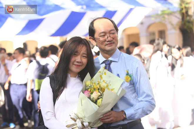 Các thầy cô rạng rỡ nhận những lời chúc mừng và những bó hoa tươi thắm từ học sinh. Ai cũng rất vui vẻ và phấn khởi. Các thầy cô cũng không quên chụp những bức ảnh kỉ niệm cùng đồng nghiệp và học trò.