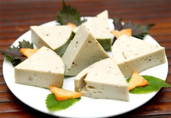 - Trải lá chuối ra, cho váng đậu vào bó thật chặt, cho vào nồi nước sôi luộc khoảng một tiếng đồng hồ. Sau đó vớt ra để nguội.
