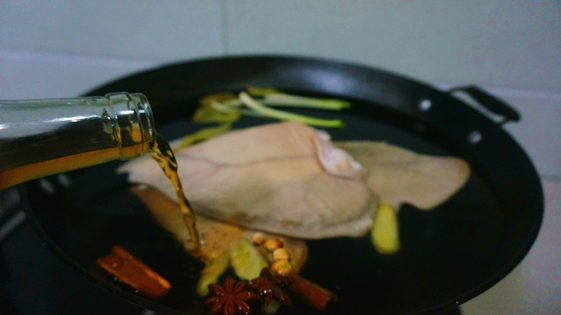Bước 1: Tai heo mua về bạn rửa sạch. Sau đó đun nước sôi, dội lên toàn bộ tai heo rồi dùng dao cạo sạch các sợi lông còn sót lại. Rửa sạch tai heo lại một lần nữa. Tiếp theo bạn thả tai heo vào nồi nước, thêm một ít hành lá cắt khúc dài, gừng thái lát, quế, hoa hồi, lá nguyệt quế vào. Lưu ý lượng nước phải ngập tai heo. Kế tiếp bạn thêm 2 thìa canh rượu nấu ăn vào. Bật bếp và đun sôi ở lửa lớn.