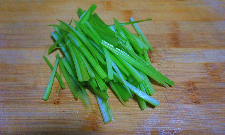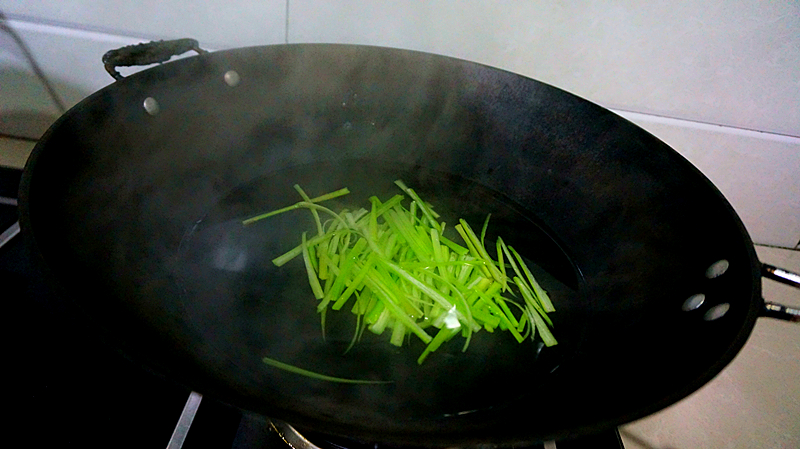 Bước 4: Sau khi ngâm tai heo trong nước đá khoảng 10 phút, bạn vớt ra. Tiếp theo thái tai heo thành miếng có độ dày khoảng 0,5cm. Cùng lúc đó, bạn đặt nồi nước lên bếp, đun sôi rồi thả rau cần tây thái khúc vào chần nhanh.