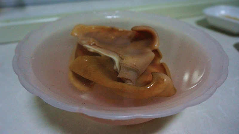 2 cái tai heo, 4g tỏi, 2 cái hoa hồi, 2 hoặc 3 lá nguyệt quế, 1/2 quả ớt ngọt màu đỏ, 1/2 thìa canh dầu hào, 1/4 thìa canh dầu ớt (hoặc dầu cay), 4g gừng, 2 thìa canh rượu nấu ăn, 1 khúc quế, 1 ít rau cần tây, 1 thìa canh sốt đậu đen, 1/2 thìa canh xì dầu, 1/4 thìa canh nước tương hấp cá Lee Kum Kee, 3 cây hành lá và một chút rau mùi.