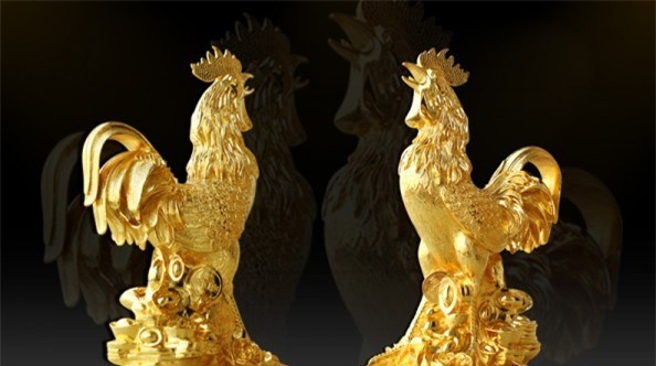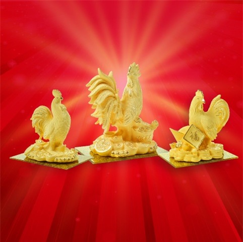 Gà trống bằng vàng là biểu tượng cho sự giàu sang, sung túc, với hình ảnh gà trống khỏe khoắn, thế uy nghi trở thành vật phẩm phong thủy mang ý nghĩa tốt đẹp, thay cho lời “Cầu tài chúc phúc – Vạn sự cát tường – Sự nghiệp hanh thông – Toàn gia đại cát” trong năm Đinh Dậu.