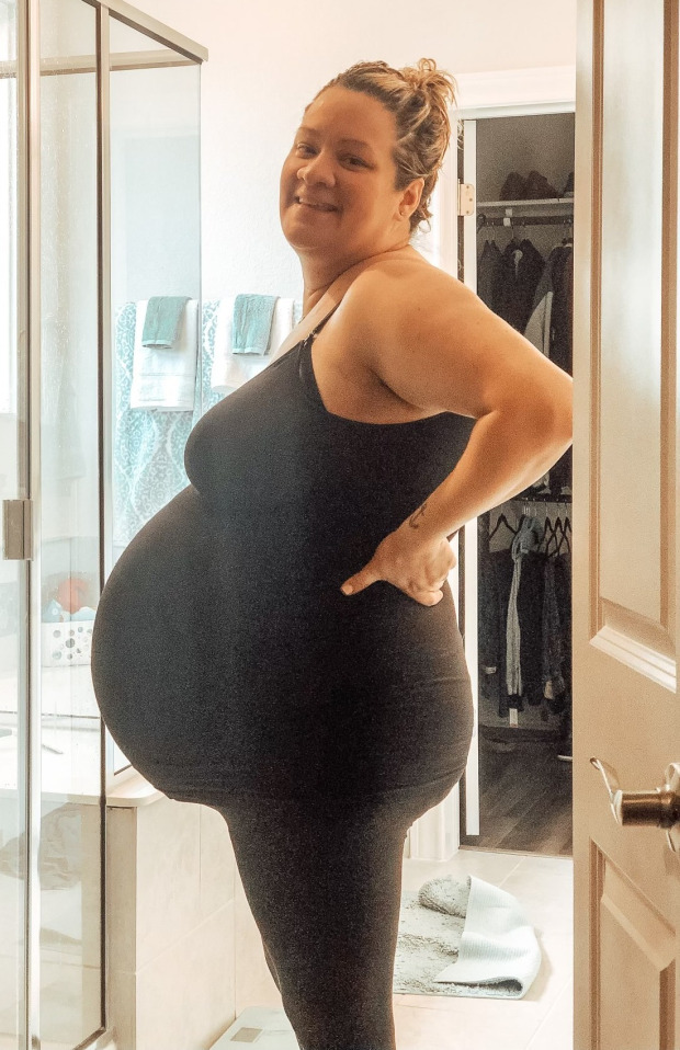 Bụng bầu khổng lồ của chị Starlyn khi mang bầu lần thứ 2.