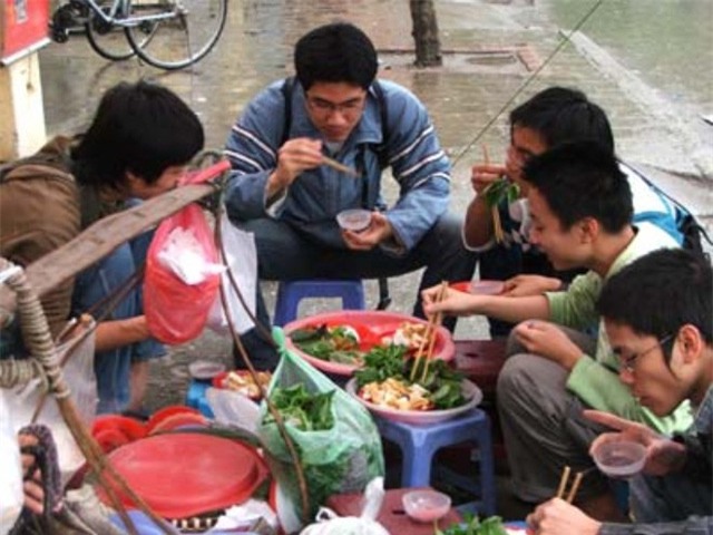 Đứng sắp hàng trên nắp cống chỉ để ăn phở Bát Đàn. Ảnh: Internet |