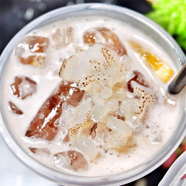 Vốn có màu trắng đục đặc trưng lại được cắt nhỏ nên nếu không biết khi nhìn sứa chìm xuống đáy cốc, loại topping này nhìn không khác trân châu trắng. Theo những người đã nếm thử thì dù là hải sản nhưng kết hợp với trà sữa không bị tanh, ăn dai dai mặn mặn khá thú vị.