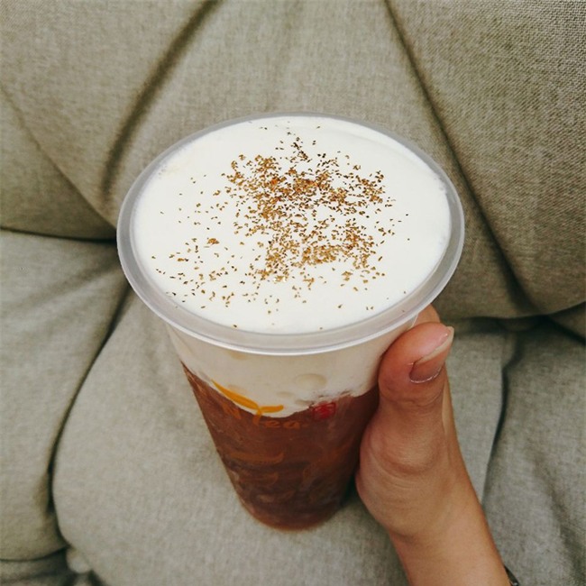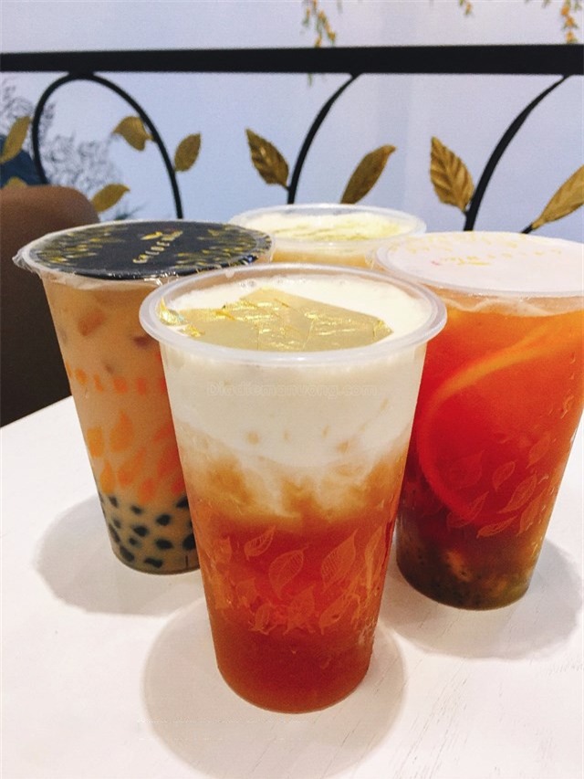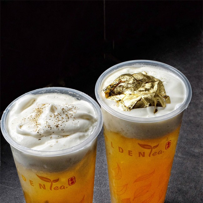 Vẫn là trà sữa như thông thường, nhưng với loại topping này, bạn sẽ được được phủ thêm một lớp vàng lá 24k hoặc bột vàng 23k lên bề mặt. Tất nhiên vàng hay cụ thể một chút xíu vàng sẽ chẳng rõ vị và không bị làm ảnh hưởng đến hương vị của các vị trà sữa, nhưng sự sang chảnh của chúng là không thể chối cãi được.