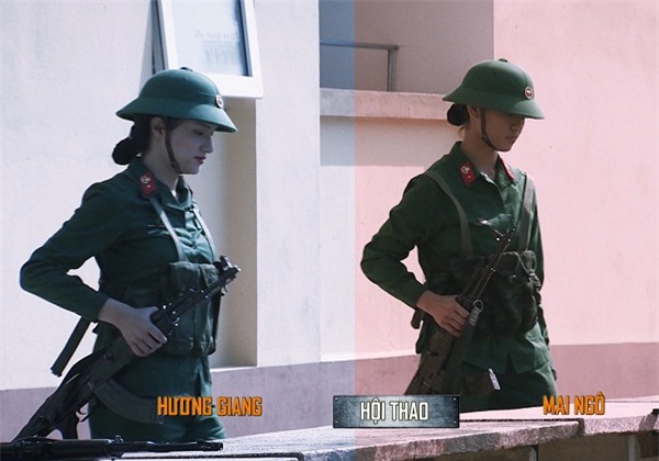 Clip: Mai Ngô và Hương Giang ngụy trang trong quân ngũ.