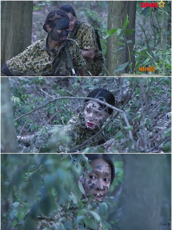 Kỹ năng được huấn luyện tiếp theo là Vận động chiến trường sau khi ngụy trang. Đây là kỹ năng khó đòi hỏi các động tác cần phải thực hiện chuẩn xác, đúng kỹ thuật. Cả 4 cô gái đều nhận thức rõ mức độ khó khăn của nhiệm vụ này và thể hiện được tinh thần cao trước khi bắt đầu.