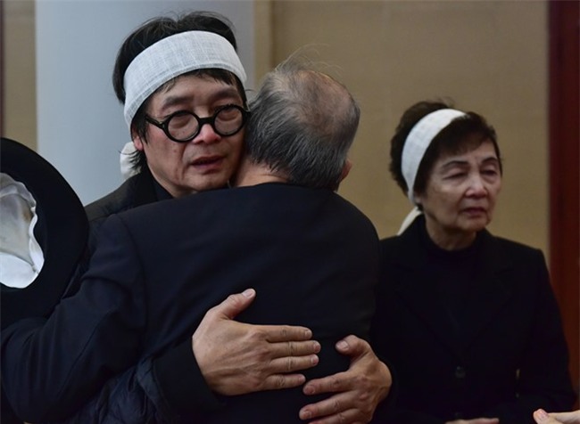 Nghệ sĩ Ngô Hoàng Quân, con trai cố nhạc sĩ Hoàng Dương, nghẹn ngào trong đám tang cha.