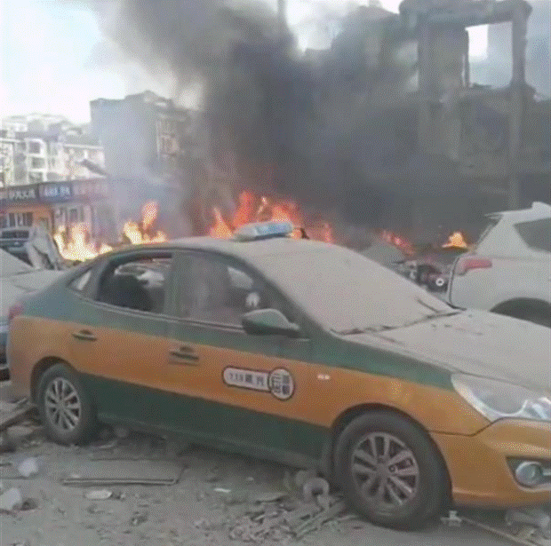 Khung cảnh xung quanh hiện trường vụ nổ (Ảnh CCTV - The Paper)