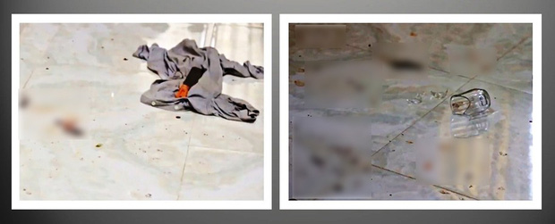 Hiện trường có nhiều vết máu. Tại đây, công an phát hiện 1 chiếc ly thủy tinh bị vỡ, 1 con dao cán nhựa.