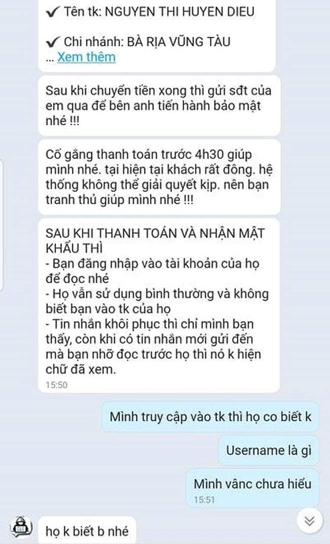 Nội dung tin nhắn giữa nạn nhân và đối tượng.