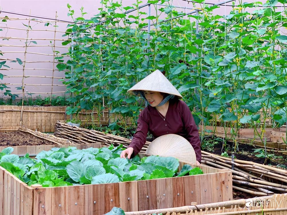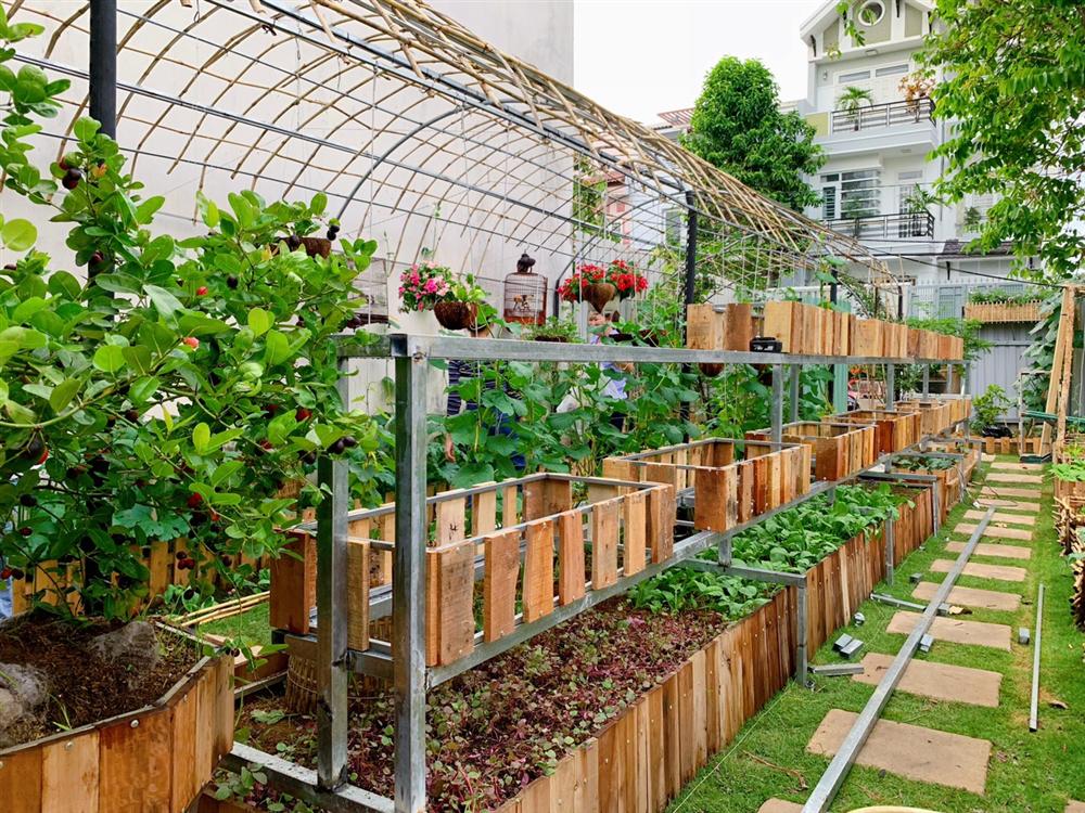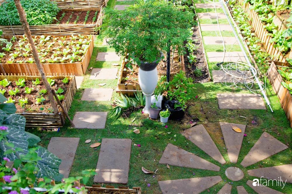 Khu vườn được thiết kế khoa học với các luống rau chia khung đẹp mắt.