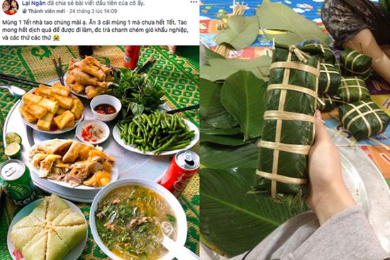 Cuối tháng 3 mà con cháu vẫn quây quần đông đủ ở nhà, nhiều gia đình rủ nhau gói bánh chưng để... “đón Tết” lần hai