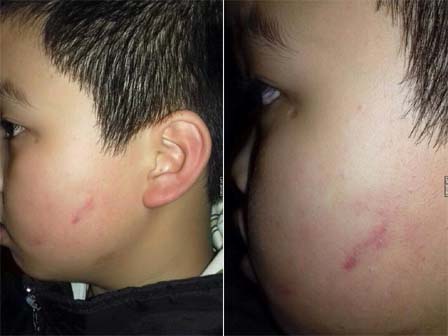 Hình ảnh từ đoạn clip cho thấy, bé trai một bên mặt bị sưng đỏ, cha mẹ của bé phải dùng thuốc bôi để giảm sưng. Khi được hỏi nguyên nhân vì sao bị tát, L. rụt rè: "Em hay bị các bạn trong lớp trêu". Sau mỗi cuộc tranh cãi với bạn lớp trưởng, với lý do là "em chửi bậy", cô giáo cho 43 bạn học sinh tát vào mặt em mà không hỏi rõ đầu đuôi câu chuyện, sự việc.