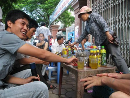Cùng với việc thử sức ở các danh mục quán ăn thực phẩm, không ít sinh viên kinh doanh đồ uống ngay cạnh các cổng trường đại học. Lê Bá Kiền cho biết, do thời gian rảnh rỗi, hay ngồi ở các quán trà đá cổng trường nên cậu nảy sinh ý tưởng bán đồ uống.