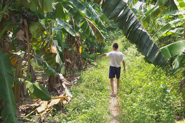 Đoạn đường 50 mét đi vào vườn chuối nơi đối tượng thực hiện hành vi