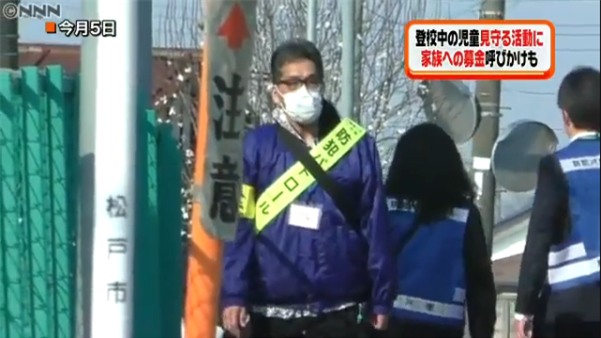 Hình ảnh nghi phạm đang làm nhiệm vụ giám sát trẻ em đi học.