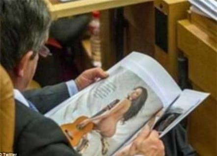 Một chính khách Tây Ban Nha đã bị bắt gặp xem ảnh phụ nữ khỏa thân trong một tạp chí được giấu bên trong bộ tài liệu lúc đang họp tại cơ quan lập pháp.