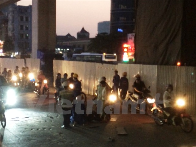 Theo ông Thảo, bảo vệ của tòa nhà M2 (149 Trần Phú, Hà Nội), vào khoảng thời gian trên, ông đang ngồi uống nước thì nghe thấy một tiếng động lớn. Nhìn ra, ông Thảo thấy phần giàn giáo thi công công trình đường sắt trên cao phía trước bị thủng một miếng ván. Phía dưới lòng đường, một công nhân nghi rơi từ trên xuống nằm bất động trong vũng máu.