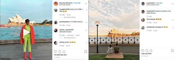 Nghi vấn xuất phát từ việc H'Hen Niê và chàng trai này thường xuyên "check-in" tại cùng một địa điểm, trong khoảng thời gian trùng khớp. Ví dụ, hoa hậu đăng video tạo dáng trước nhà hát Opera Sydney (Australia) vào ngày 9/5. Ngày 10/5, Tuankhoi cũng chia sẻ hình ảnh cho thấy anh đang ở tại địa điểm này.