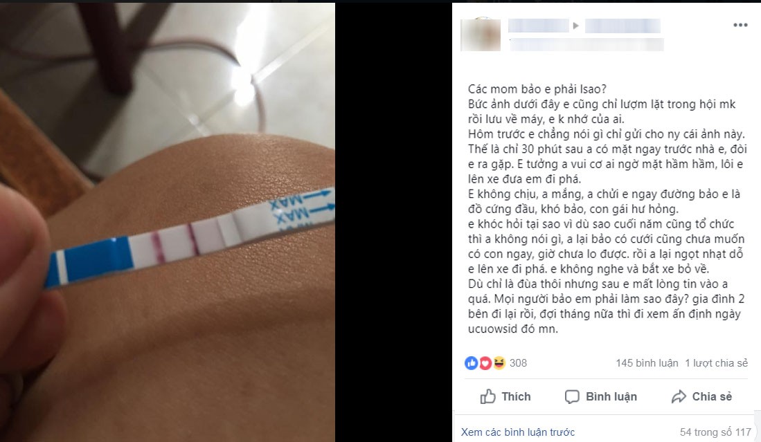 Mới đây, lại thêm một câu chuyện liên quan việc thử lòng bạn trai bằng que thử thai và nhận về cái kết đắng. Theo đó, facebook M.T đã chia sẻ bức que thử thai đi mượn và câu chuyện của mình như sau: