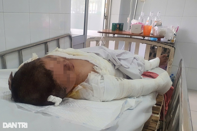 Chia sẻ trên Dân Trí, bà L., ở trên giường bệnh, toàn thân gần như bị băng bó kín, vùng đầu, mặt lộ ra nhiều vết cháy đen, cho biết, bản thân có 2 con với chồng trước đã mất và con gái gần 4 tuổi với chồng sau (hiện đã không còn sống chung). Hằng ngày, bà kiếm sống bằng nghề bán vé số và đi phụ bán hủ tiếu.