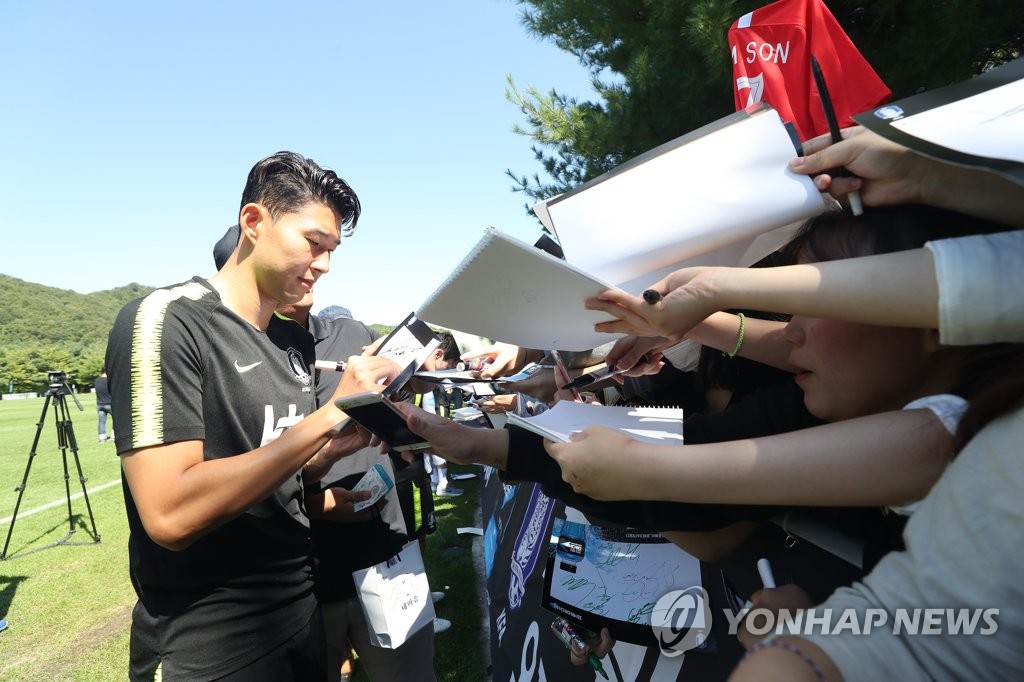 Khi 24 tuyển thủ bước ra sân, các cổ động viên bắt đầu hò hét ầm ĩ, thi nhau gọi tên các thần tượng, tạo ra bầu không khí huyên náo bên trong Trung tâm huấn luyện quốc gia Paju. Son Heung-min và Lee Seung-woo, bộ đôi đang thi đấu ở châu Âu và là những người hùng ASIAD 2018 đương nhiên được chú ý nhất. Một CĐV giơ tấm bảng viết tay: "Tôi không biết nhiều về bóng đá nhưng Lee Seung-woo trông thật ngầu".