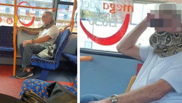 Sự việc hy hữu vừa mới đây được chia sẻ rộng rãi trên mạng về một người đàn ông có hành động kỳ lạ, mang hẳn con trăn dài hàng mét lên xe buýt. Điều bất ngờ rằng nam hành khách cho loài bò sát này cuốn quanh cổ như chiếc khăn và chỉ khi nó di chuyển, bò nghoe nguẩy quanh chỗ ngồi thì sự việc mới bị phát hiện.
