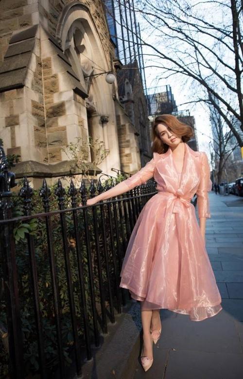 ...đến trang phục dạo phố. Tuy sử dụng toàn gam màu nữ tính này, nhưng nữ diễn viên khéo léo chọn cho mình nhiều items theo các phong cách khác nhau, khiến vẻ ngoài không bị nhám chán.