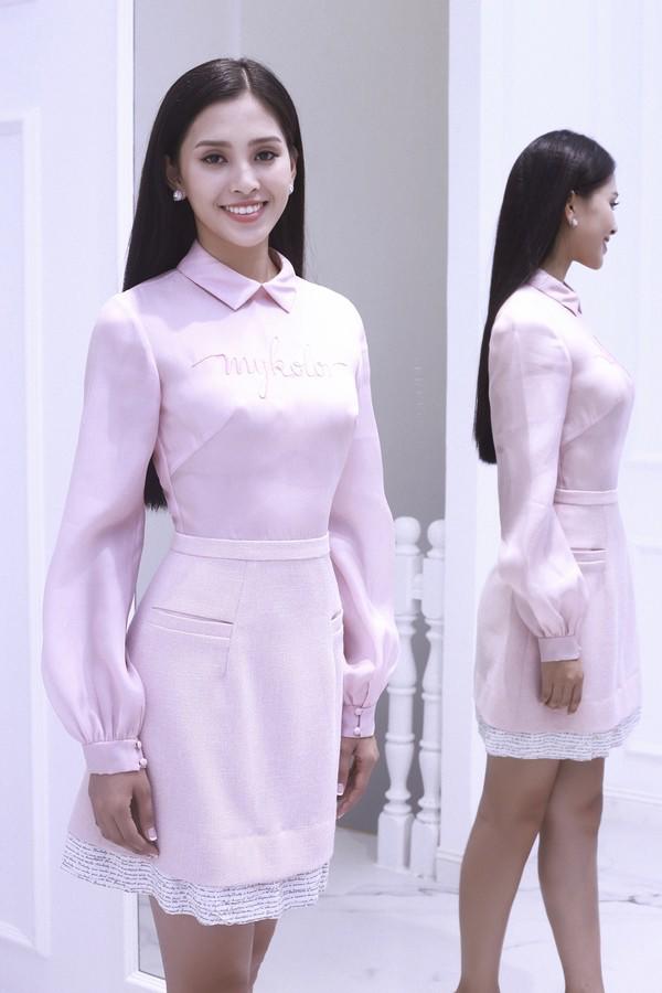 Chẳng cần sang chảnh hay làm lố, đầm hồng và tóc đen suông dài dường như đã trở thành "thương hiệu" của Tiểu Vy mà ngày càng nhanh chóng "vượt mặt" cả đàn chị.