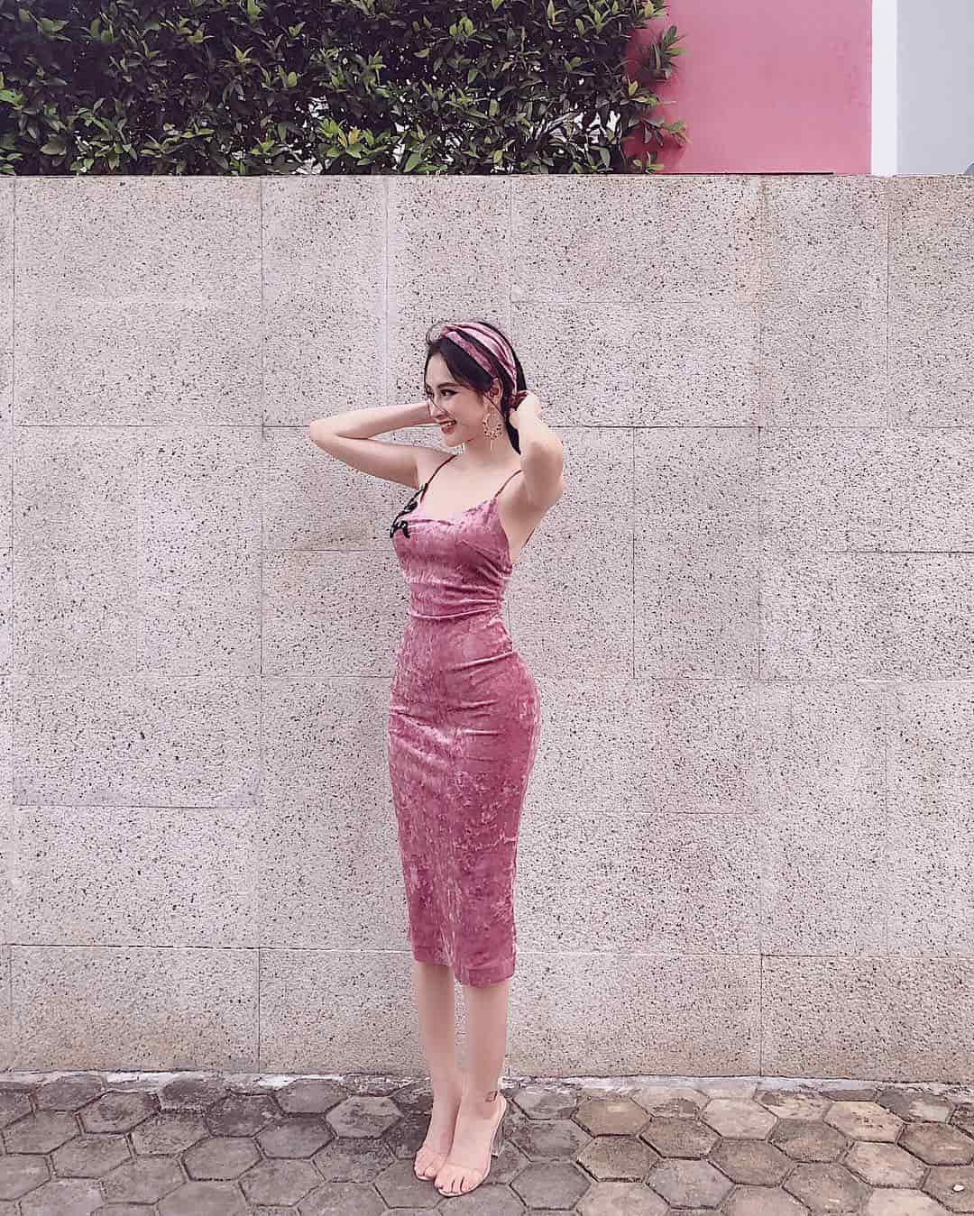 Ngoài Ngọc Trinh, Angela Phương Trinh cũng là cô nàng yêu màu hồng và ghét sự giả dối. Từ ngày này qua tháng nọ, dù có đắm chìm với bao nhiêu loại áo và váy quần đủ loại thì trong tủ đồ "Mỹ nhân siêu vòng 3" chắc chắn phải có váy hồng và ngàn lẻ một loại phụ kiện cùng tông.